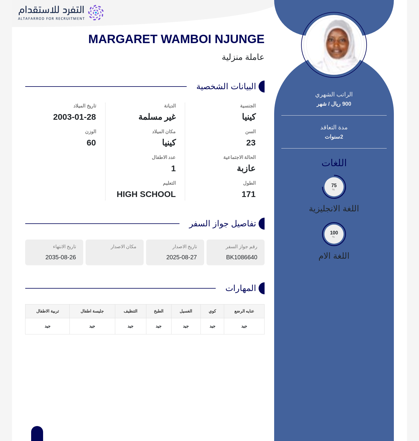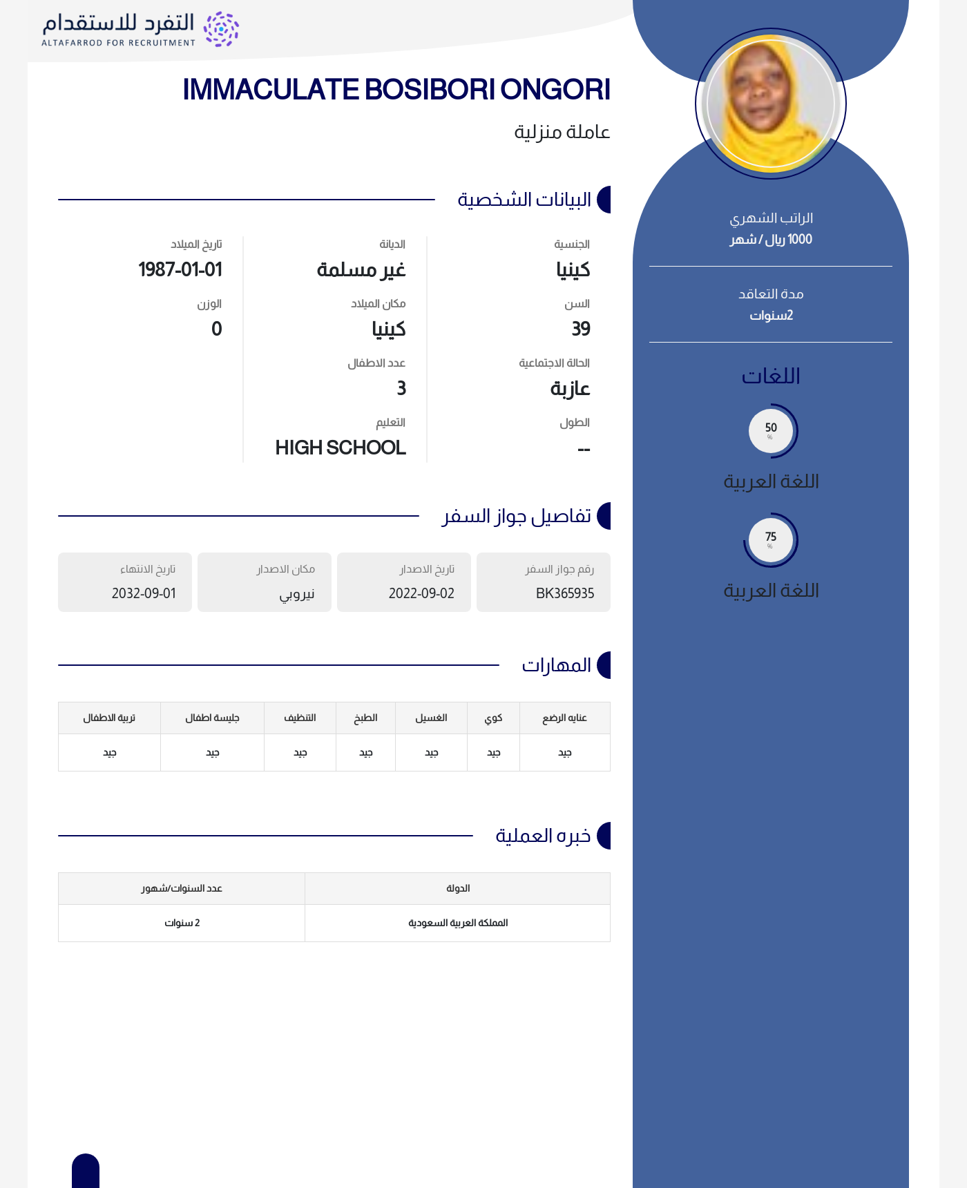 عاملة منزلية