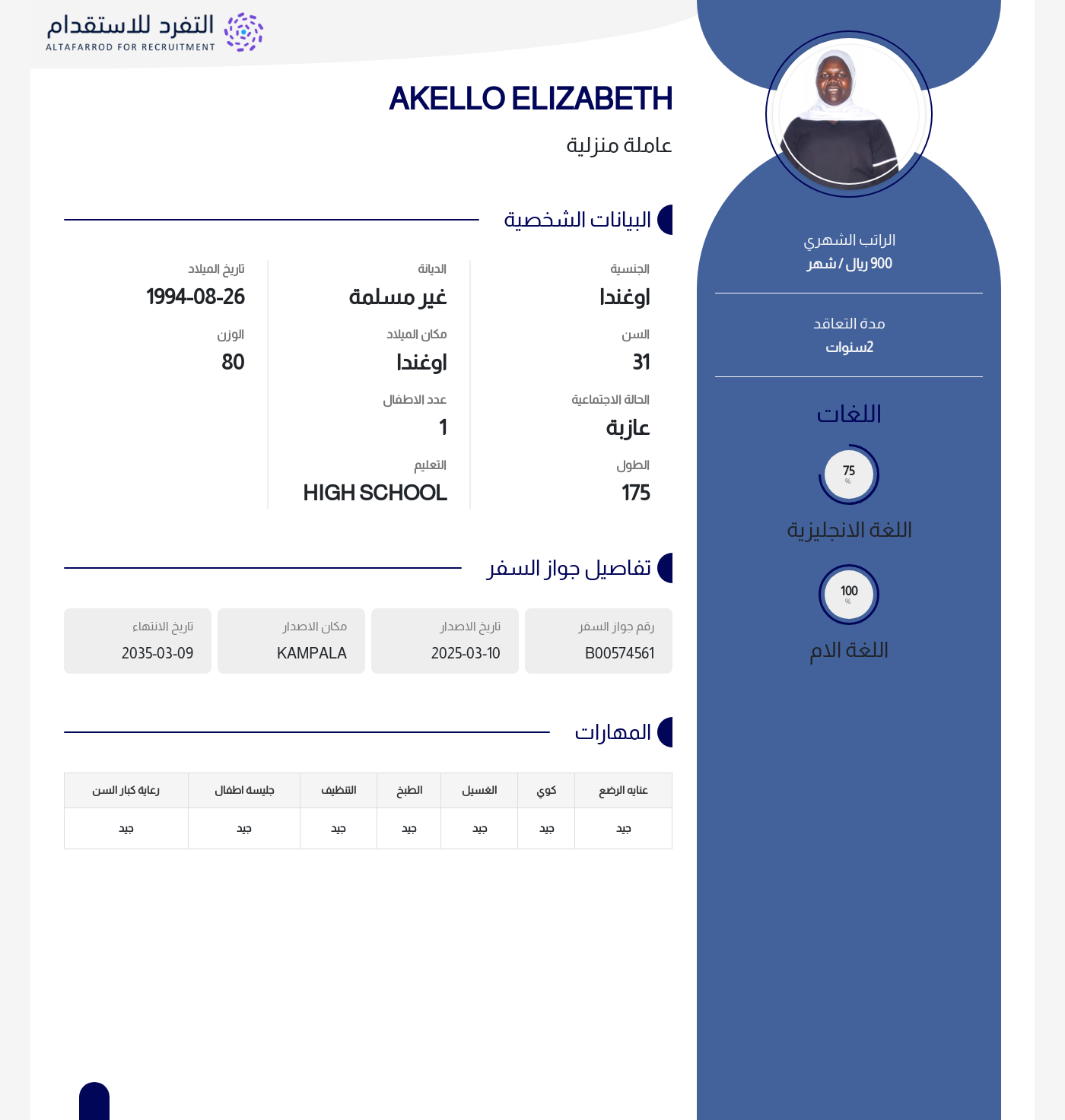 عاملة منزلية