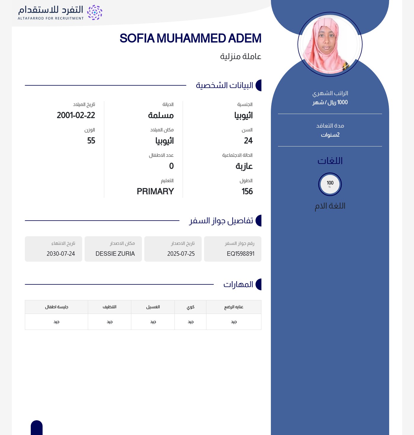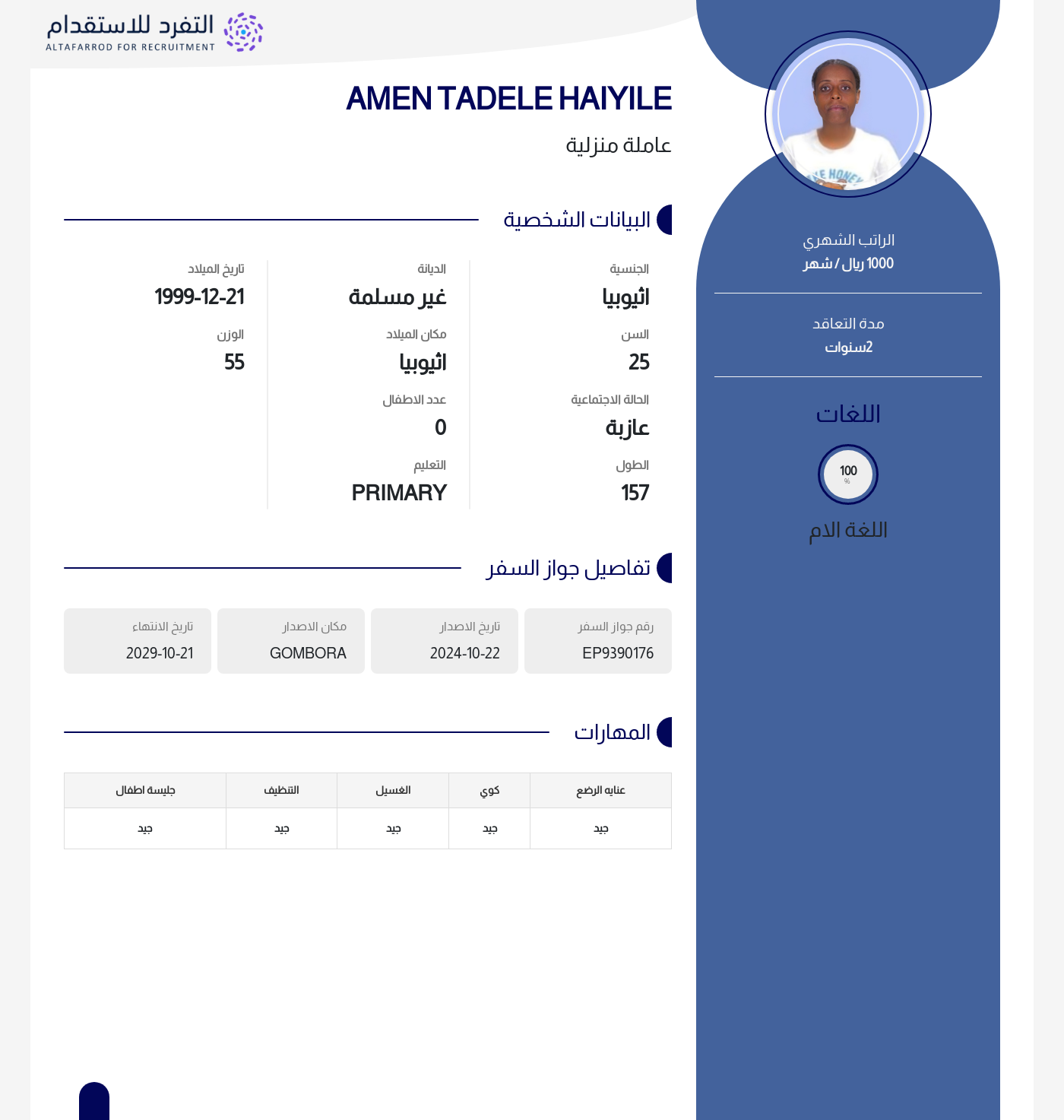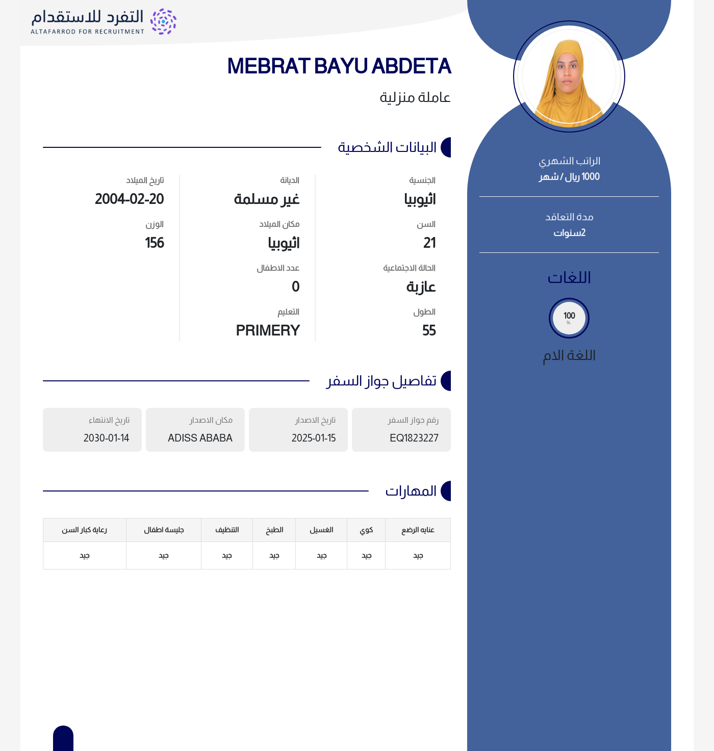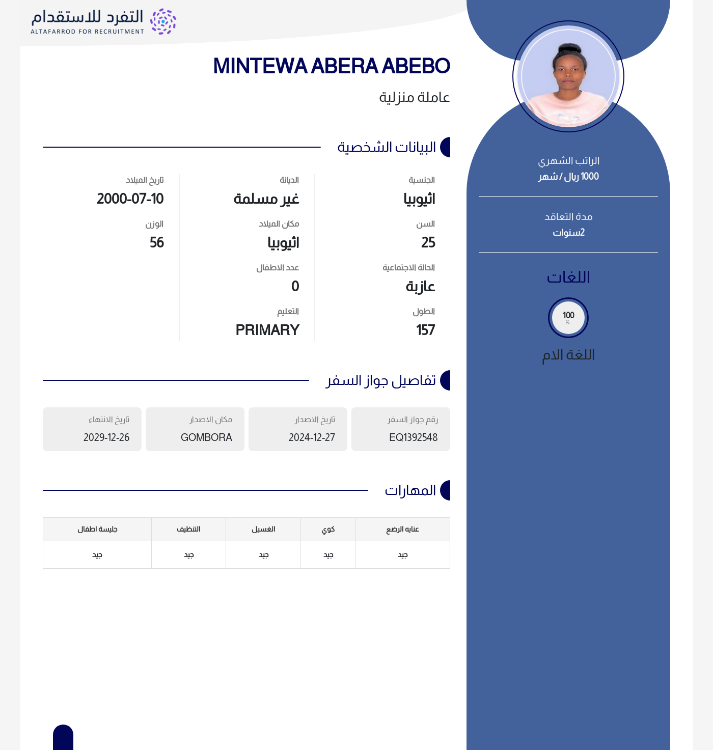 عاملة منزلية