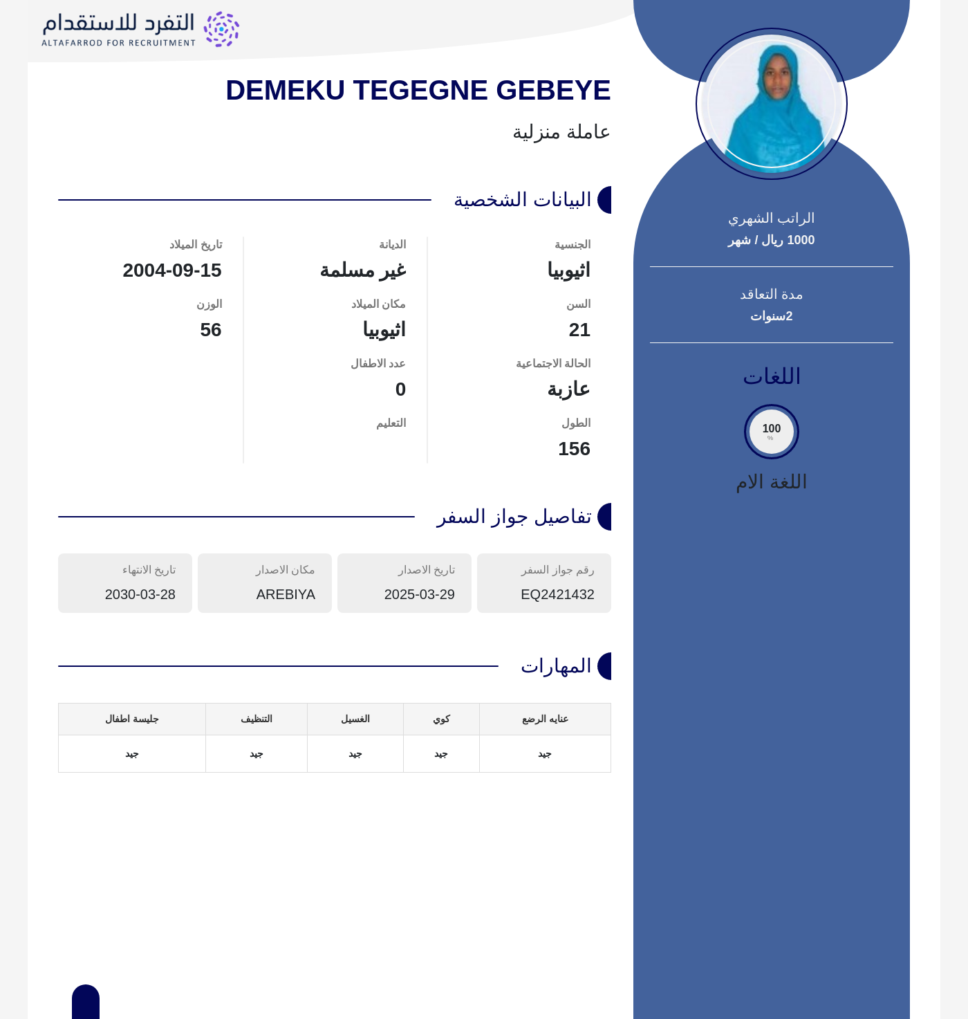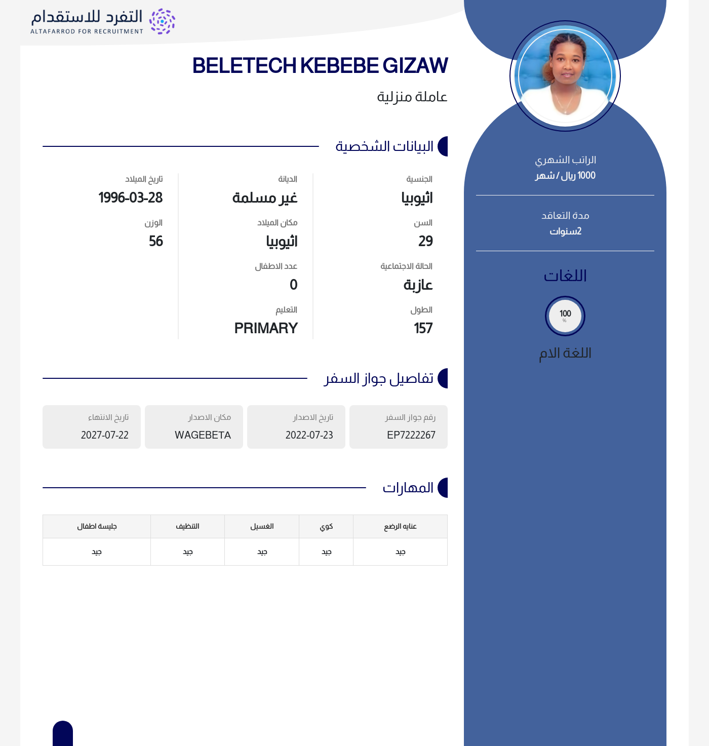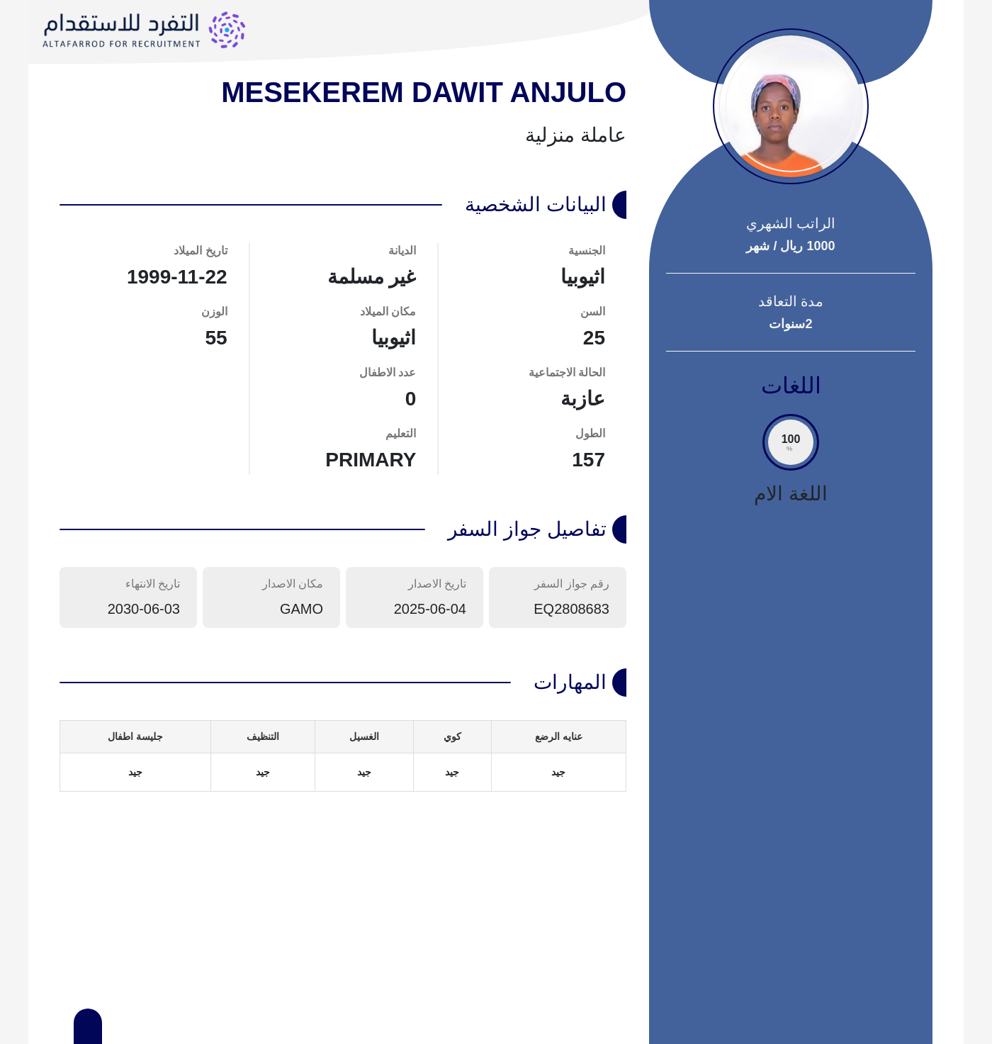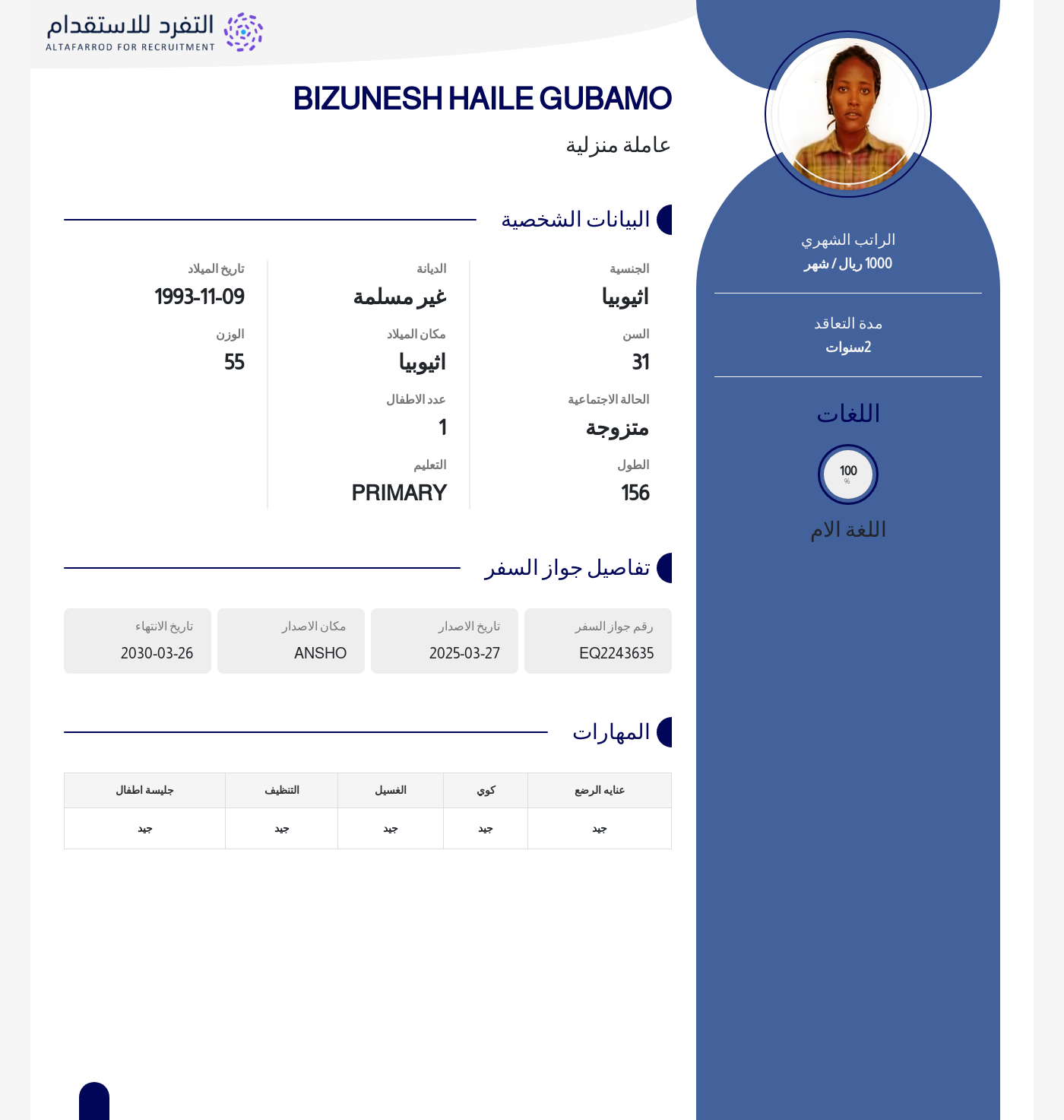عاملة منزلية
