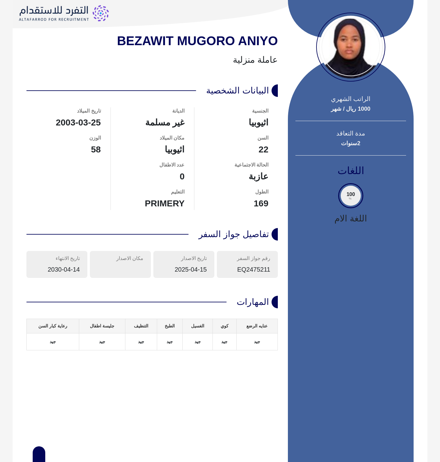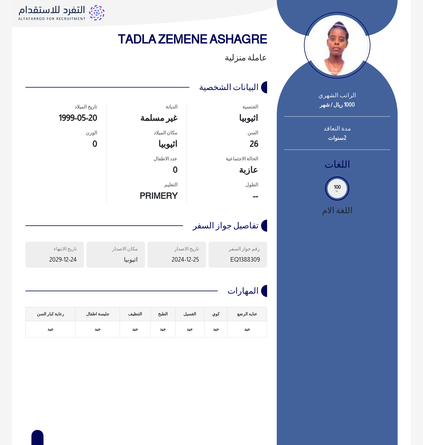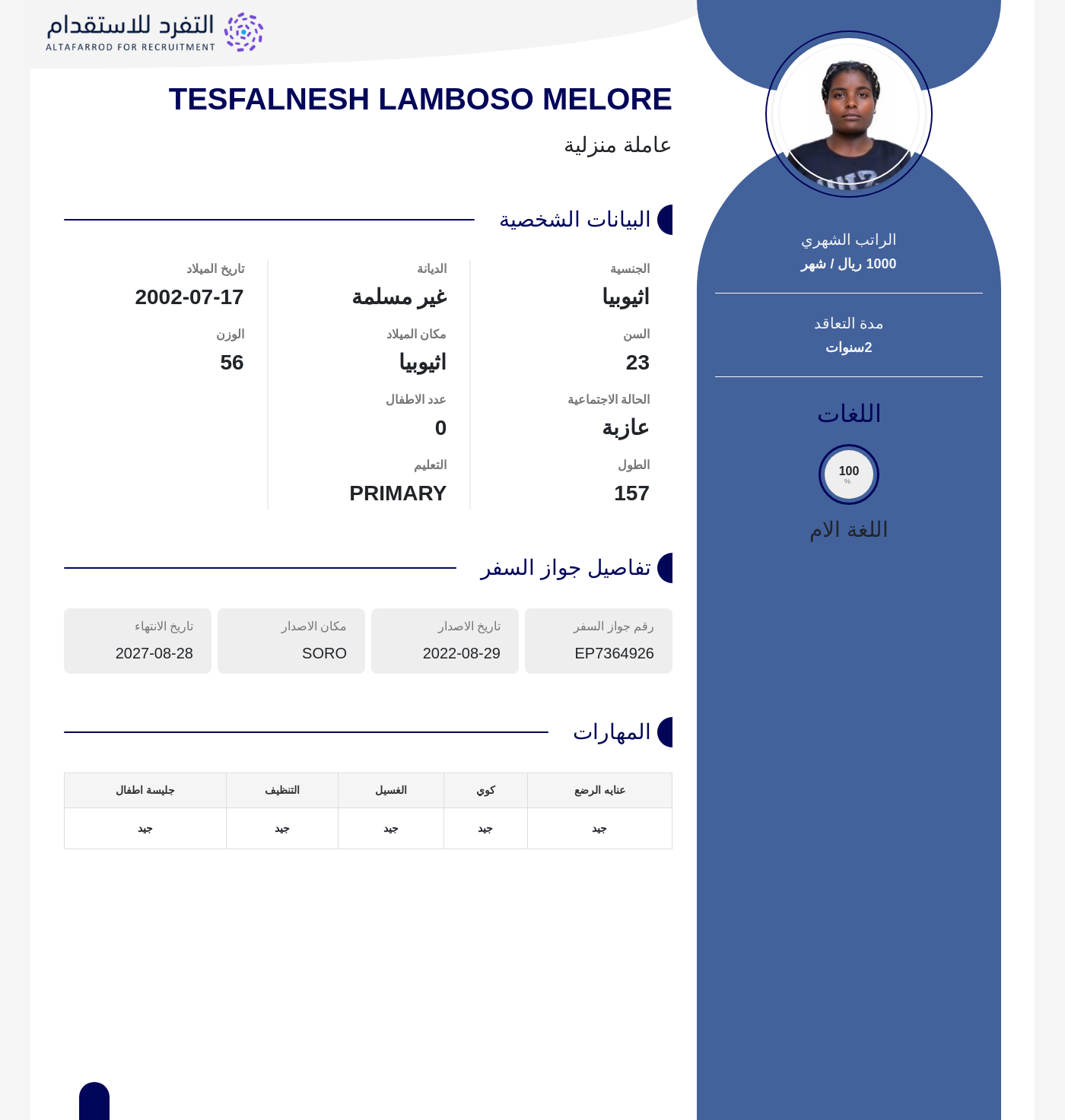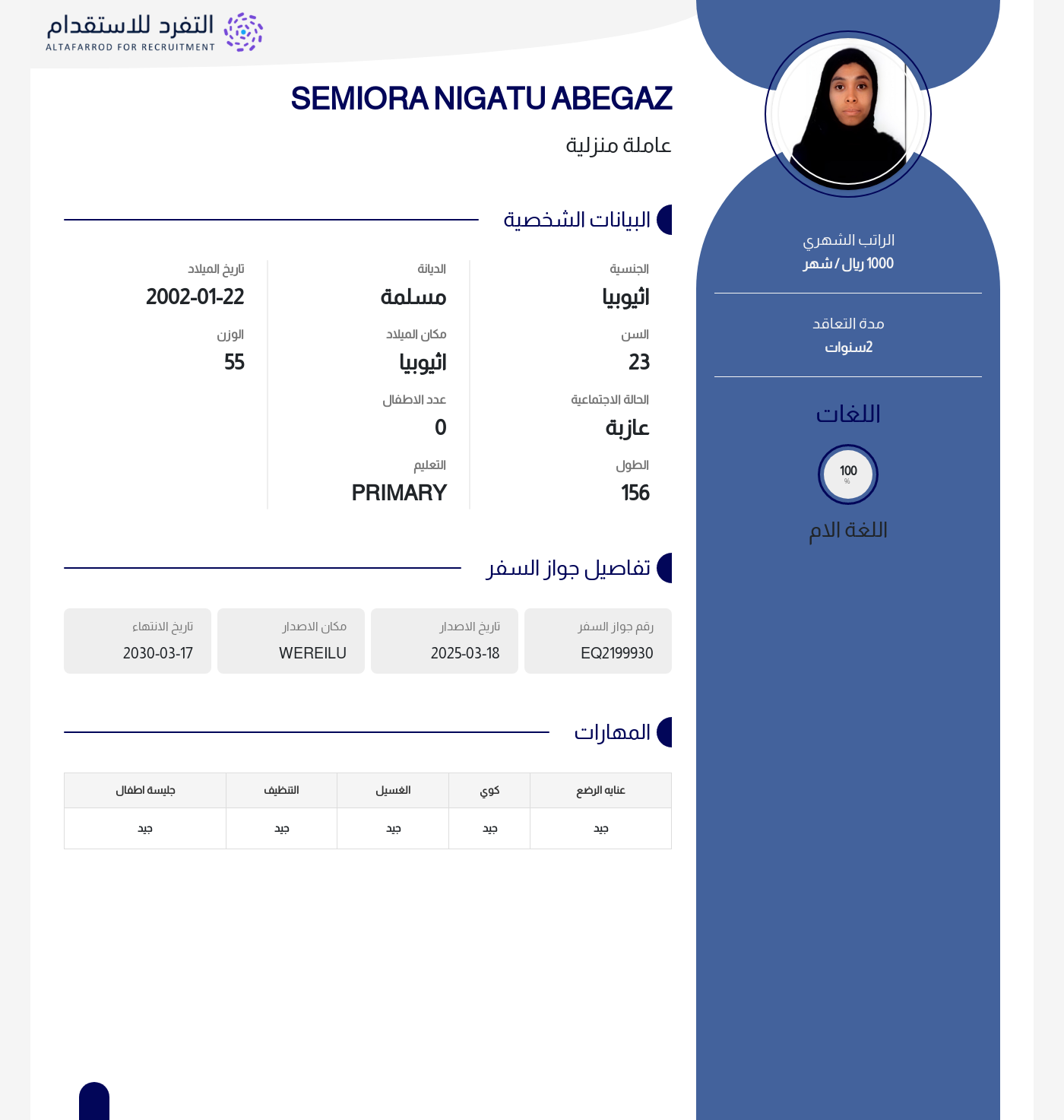 عاملة منزلية